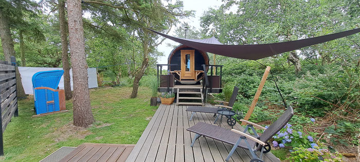 Unsere Fass-Sauna kann mit bis zu 6 Personen genutzt werden.